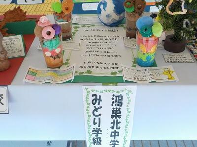 本校のみどり学級の素晴らしい作品が「クレアこうのす」で、2月14日まで飾られました。平面では季節を感じる作品を立体的に表現し、初夏の雨の様子や秋の収穫の時期の様子をうまく表現していました。立体では、「みどりカフェ」として、パフェなどの作品を実物大に制作し、人々の目を惹きつけていました。
