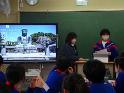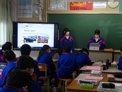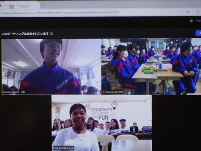 昨日、3校時に1年生、4校時に2年生がフィリピンの学校とオンラインで繋いで交流授業を行いました。それぞれ15分の持ち時間でプレゼンを行い、残りの15分でQAを行いました。1年生の方は接続等が最初にうまくいかず、予定どおりに進めることができませんでしたが、2年生の方は予定どおり進めることができました。プレゼンをするだけではなく、それについて議論できる機会があるというのは良い経験になりますね。