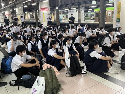 臨時列車のホームでは、全員で添乗員さんにお礼の言葉を言いました。