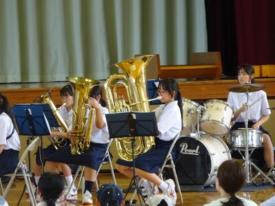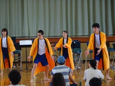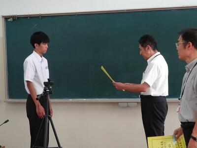 本日6校時に、表彰集会と学校総合県大会壮行会を行いました。猛暑のため、リモートで行い、壮行会の最後の応援だけは中庭を使用して行いました。