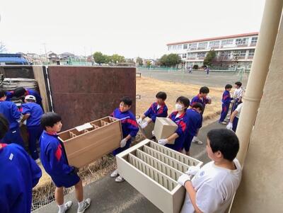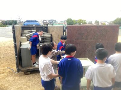 資源回収 投稿: 鴻巣北中学校 (17:54) 今日の放課後、古いパイプ椅子などを処分するために、業者の方にトラックで回収に来ていただきました。トラックに積み込む際には、ボランティア隊が大活躍してくれました。 -