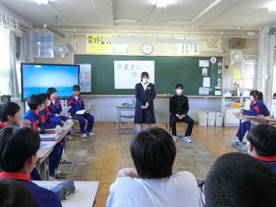 2年生の総合的な学習の時間に、先日卒業した3年生を招いて「3年生に学ぶ会」を行いました。