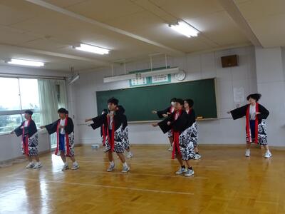 10月19日(日)に行われるおおとりまつりでの2年生ソーラン隊デビューに向けて、人前で踊る練習を昼休みに行いました。写真には写っていませんが、手前に観覧者がたくさんいます。当日も頑張ってほしいです。