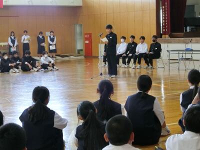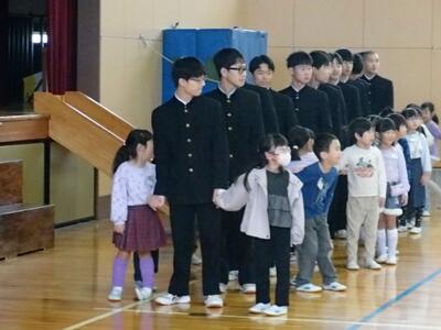 今朝は3年2組が鴻巣北小学校へ行き、小学生のみなさんに合唱を披露してきました。