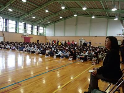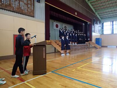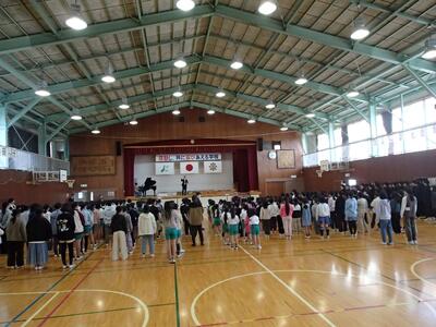 今朝は3年1組が箕田小学校へ行き、小学生のみなさんに合唱を披露してきました。