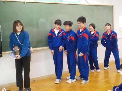 先週、2学年では11月に行う予定だったもののインフルエンザ流行のため延期していた子育てふれあい体験事業が行われました。本来だったら乳児とそのお母様にもご来校いただき、生徒と触れ合う予定でしたが、またしてもインフルエンザ流行のため、今回は講演会のみの開催となりました。