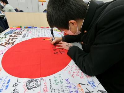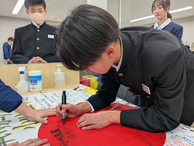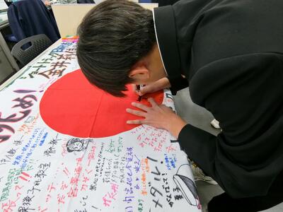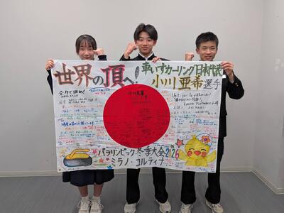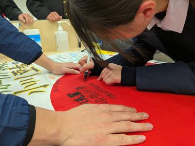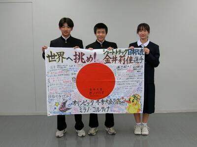 1月末と先週、本校卒業生の金井選手、小川選手を応援するため、生徒会役員代表してが市役所に行き、応援メッセージを書いてきました。